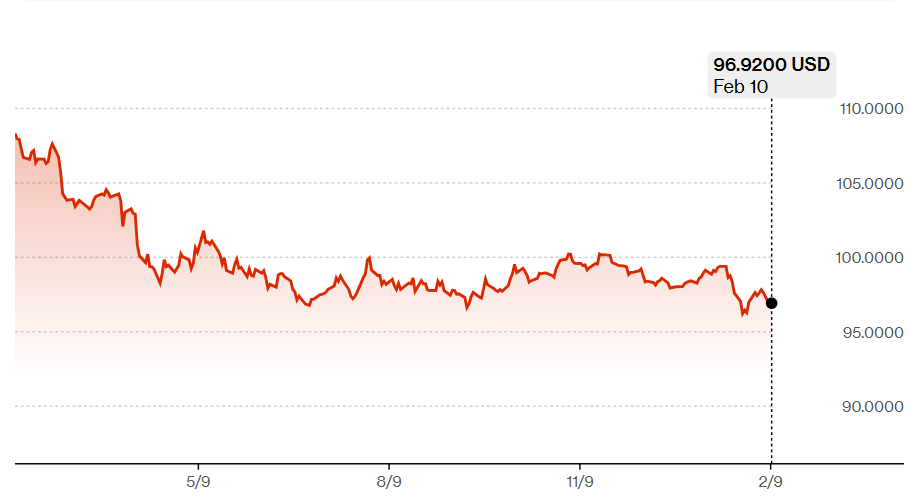 米ドルインデックスは最近4年ぶりの安値を記録した。出典: Bloomberg